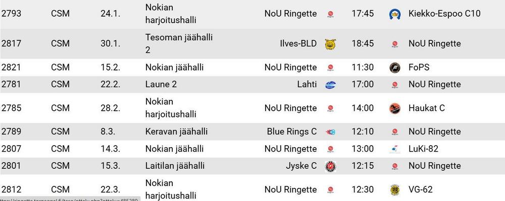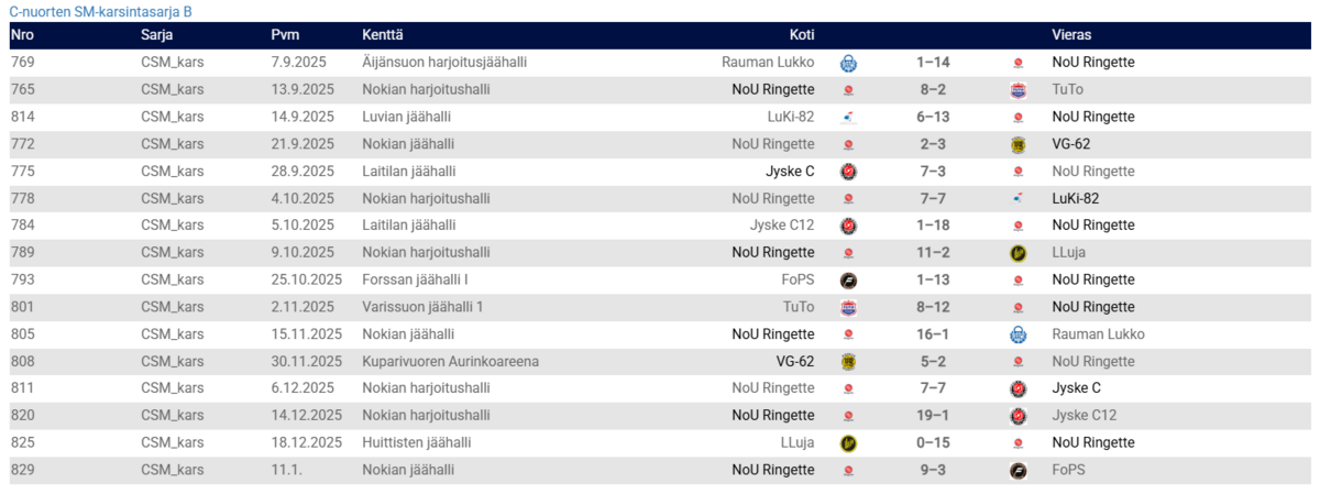 C-nuorten SMsarjan otteluohjelma