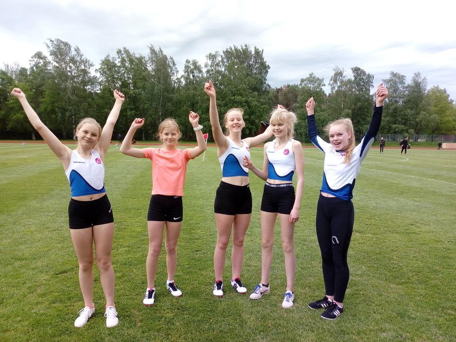 T13 sarjan 200m aitajuoksijat iloitsivat omia onnistumisia